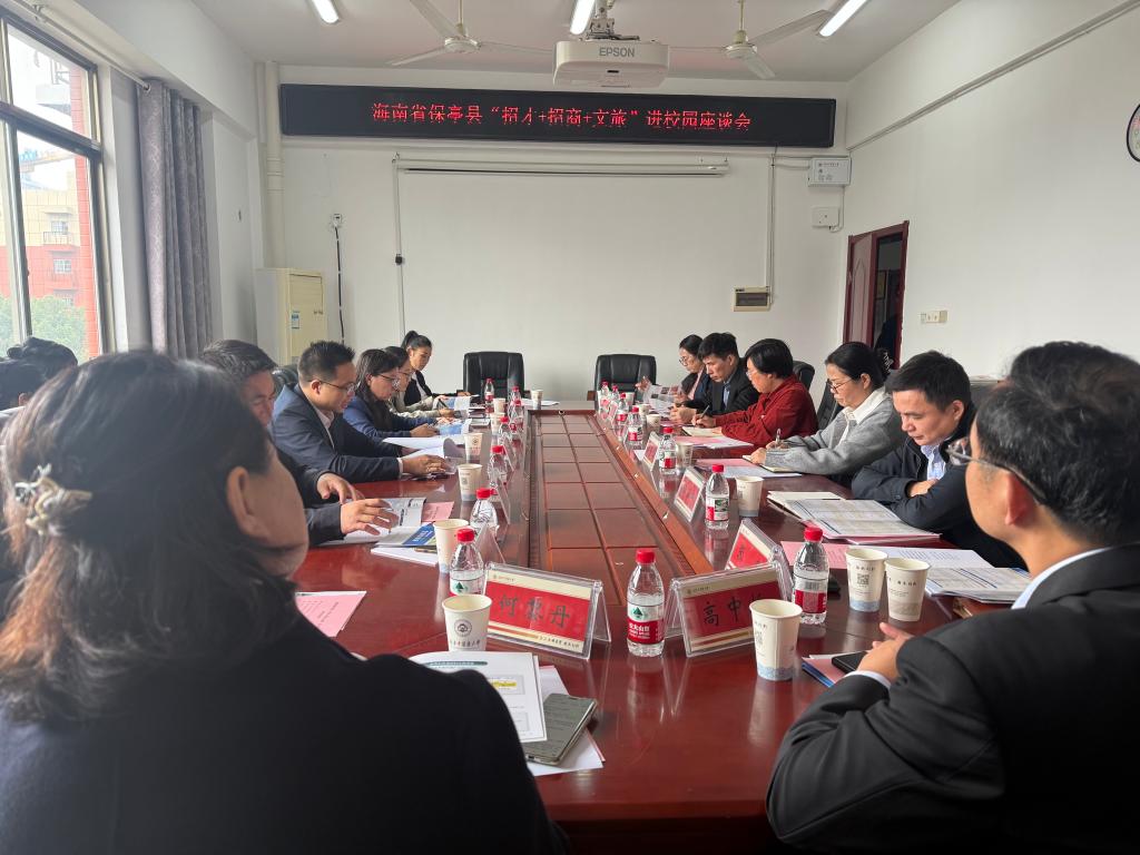 座谈会由招生就业处庹勤慧处长主持。会议伊始,庹处长对保亭县代表团一行的到来表示热烈欢迎,并介绍了学校在办学层次、科研能力、社会服务等方面的优势与特色,强调学校愿与地方携手,促进教育、科技与人才工作协同发力,共同培育符合新时代要求的高素质人才。