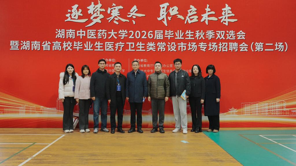 12月22日上午,“湖南中医药大学2026届毕业生秋季双选会暨湖南省高校毕业生医疗卫生类常设市场专场招聘会(第二场)”在我校含浦校区体育馆隆重举行。校长易刚强、副校长喻嵘现场指导工作,本场招聘会汇聚120余家优质企业,释放4000余个医疗卫生类热门岗位,以“AI赋能+专业指导+暖心服务”的多元模式,为医卫类毕业生搭建高效就业桥梁。